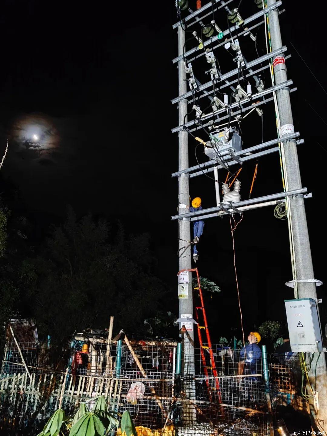 经过昼夜不间断奋战,至19日3时32分,全市因台风受损线路全部恢复运行,受影响用户重享光明,并且为后续的灾后复产工作提供了强劲的电力护航。(图/文 阳春市供电局)